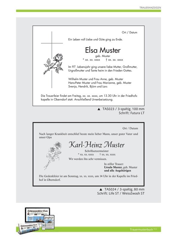 Folgender Text sollte bei der Traueranzeige oben stehen::